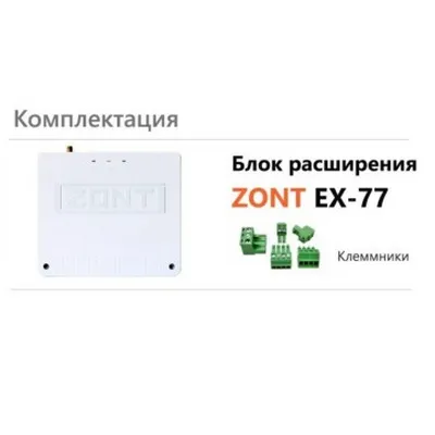 - Подключение блока расширения ZONT EX-77 к регулятору ZONT Climatic 1.3 увеличивает систему отопления на 2 управляемых прямых/смесительных контура.