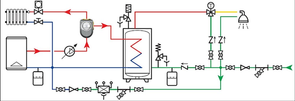 Клапан смесительный Stout можно использовать не только для слияния потоков, но и в качестве разделителей. Помимо этого, клапаны можно применять для повышения температуры обратного потока в теплогенератор, чтобы предотвратить конденсацию (в твердотопливных или дизельных генераторах).