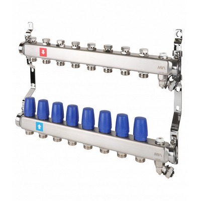 Коллекторные группы MVI предназначены для распределения потока рабочей среды систем водяного отопления по потребителям. При этом под «потребителем» понимается отдельный нагревательный прибор или группа приборов, контур или петля «теплого пола», отдельные части или ветви системы.