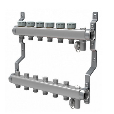 - Эффективная регулировка: 6 регулировочных вентилей с пропускной способностью 3,8 м³/ч позволяют точно настроить температуру в каждом контуре.