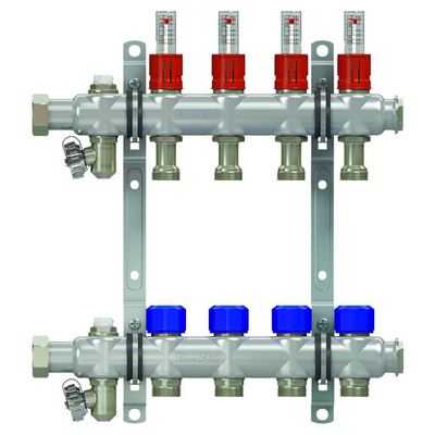 Коллекторная группа Elsen с регулирующими вентильными вставками М30х1,5 для термостатического либо электронного регулирования используется в системах отопления радиаторного типа или иных типов. Изделие комплектуется кранами Маевского для удаления воздуха из системы. Коллекторная группа поставляется в конфигурации от 2 до 12 контуров.