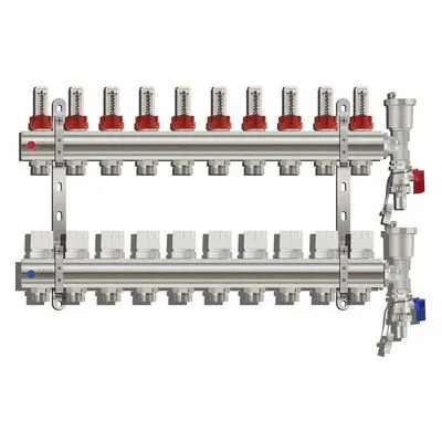 На коллекторе установлены расходомеры, которые позволяют контролировать расход теплоносителя в каждом контуре. Также на коллекторе имеются воздухоотводчики, которые предотвращают образование воздушных пробок в системе.