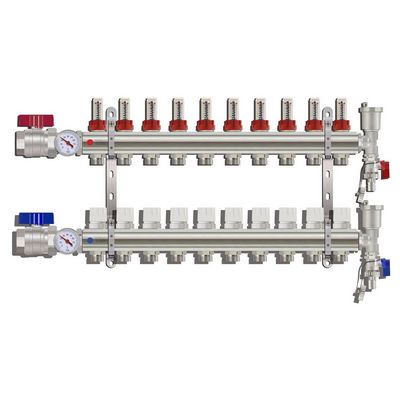 Коллекторная группа для теплого пола Tim предназначена для распределения теплоносителя по отдельным контурам системы теплого пола, обеспечивая сбалансированную подачу тепла каждому потребителю. С помощью этой гребенки можно дополнительно контролировать температуру как на подаче, так и на обратке, а также управлять количеством теплоносителя, проходящего в каждом отдельном циркуляционном кольце.
