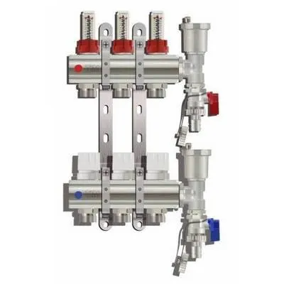 На коллекторе установлены расходомеры, которые позволяют контролировать расход теплоносителя в каждом контуре. Также на коллекторе имеются воздухоотводчики, которые предотвращают образование воздушных пробок в системе.