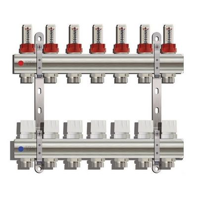 Коллекторная группа для теплого пола Tim латунная с расходомерами предназначена для распределения теплоносителя по контурам теплого пола. Коллектор имеет ручную регулировку с возможностью установки сервоприводов с резьбой М30х1,5 для управления теплым полом с помощью автоматики (программатор, термостат).