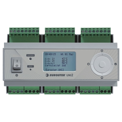 Euroster UNI2 имеет ряд полезных функций и систему предотвращения остановки насоса, которая предотвращает заклинивание неиспользованного рабочего колеса насоса. После окончания отопительного сезона система автоматически запускает насос каждые две недели на 30 секунд (чтобы система работала после сезона, контроллер следует оставить включенным).