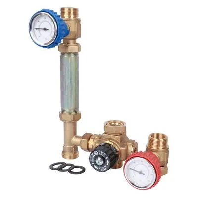 Насосная группа Stout быстрого монтажа с четырёхходовым термостатическим клапаном предназначена для обеспечения принудительной циркуляции и поддержания постоянной температуры теплоносителя в системе отопления, например, в системе типа «теплый пол».