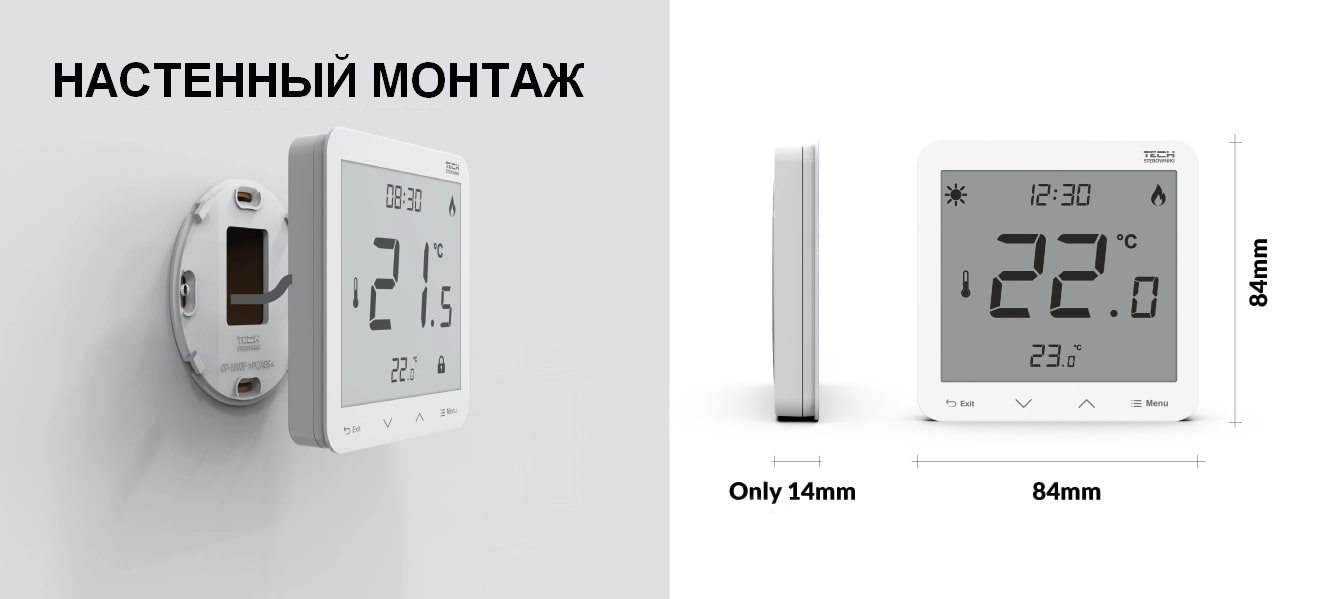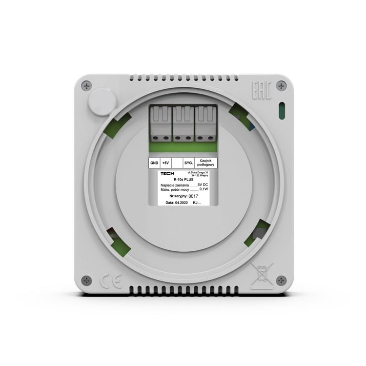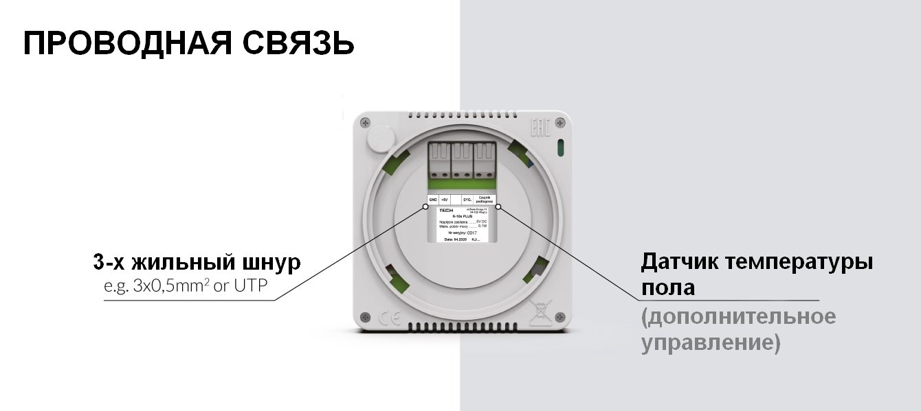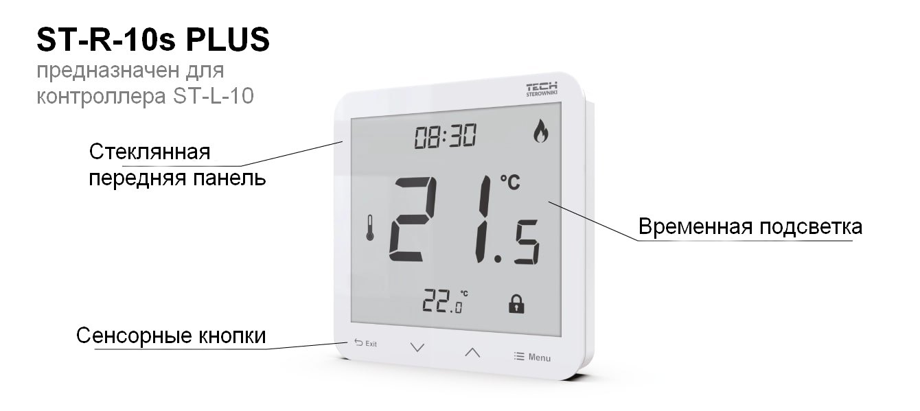 Проводной комнатный терморегулятор Tech R-10S PLUS предназначен исключительно для работы с монтажной планкой Tech L-10.